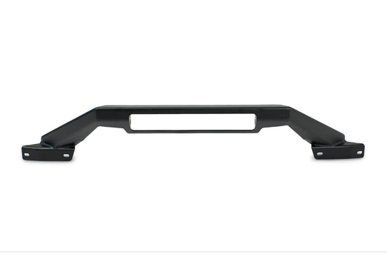 This Bronco bull bar was designed for use with the OEM modular steel front bumper, and it mounts to the factory accessory mount locations utilizing OEM hardware. It sits much lower in front of the grille than the OEM version, giving it a low profile stance. A 13-inch single row LED light bar can be mounted within the bull bar, keeping a streamlined appearance.