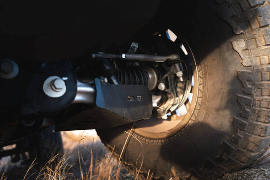 DV8 Offroad’s A-Arm Skid Plate for the 2021+ Bronco was designed to protect the aluminum front, lower control arms and shock bolt from rocks and other obstacles on the trail. Made from 3.5mm steel and finished in a micro-texture black powder coat, it also shields the vulnerable shock bolts from damage. Couple this with our Front Skid Plate and fully protect the front undercarriage of your Bronco while running those rocky trails you love.