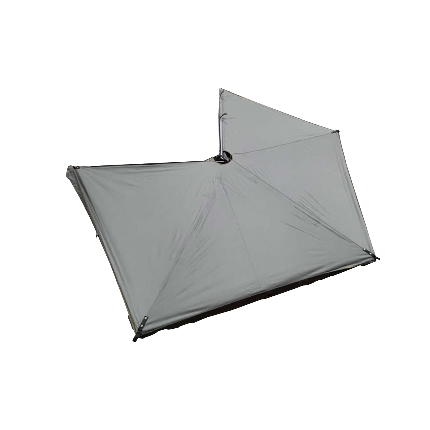 Crafted from the same durable taupe material as our tents. Available in both driver side and passenger side configurations, choose between the 6.5 or 7.5 feet variant to suit your needs. Its freestanding design offers superior stability compared to the competition, thanks to its unique construction. The middle legs feature openings for hanging storage bags and other items, and a convenient storage bag slides into the base of the awning for easy access.