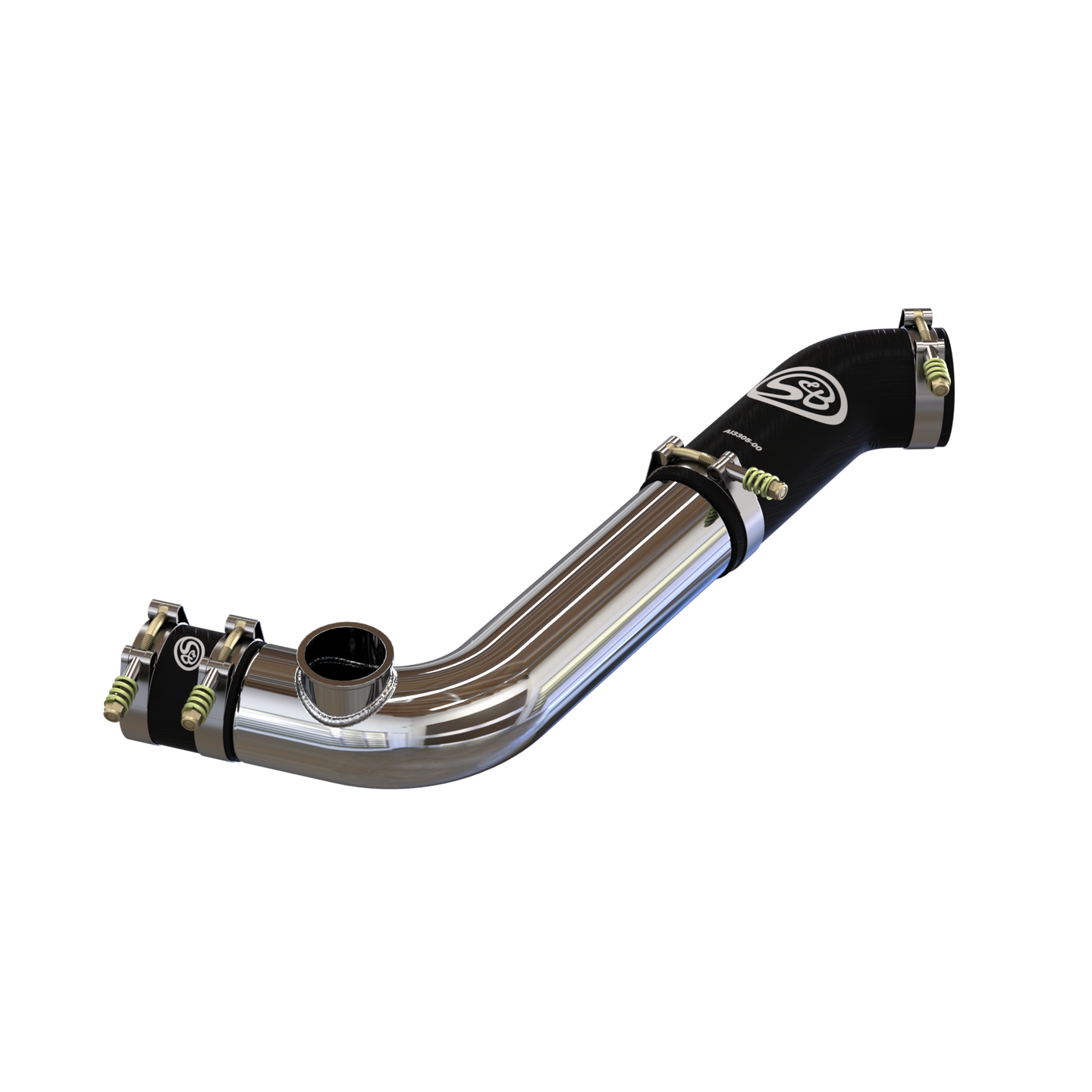 The S&B Cold Side Intercooler Pipe replaces the restrictive OEM intercooler pipe and works with a Turbosmart Raceport blow off valve.