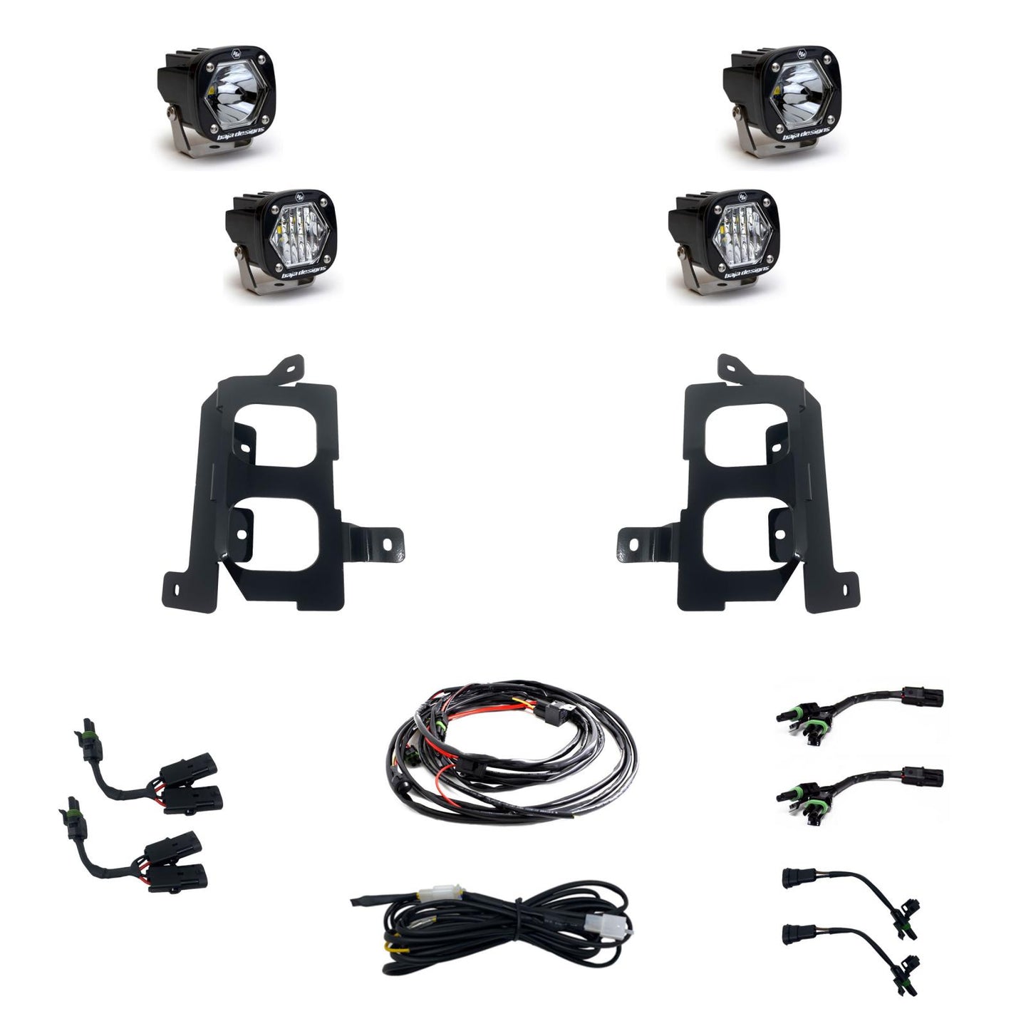 The Baja Designs Fog Pocket kit is the perfect mix of high-quality on and off-road performance for your GMC, 2500 and 3500 20-On! Available in White or Baja Amber, this kit utilizes the factory fog pocket location to pack two S1 lights on each side. This kit is controlled by the factory fog switch to operate the lower pair S1 lights.