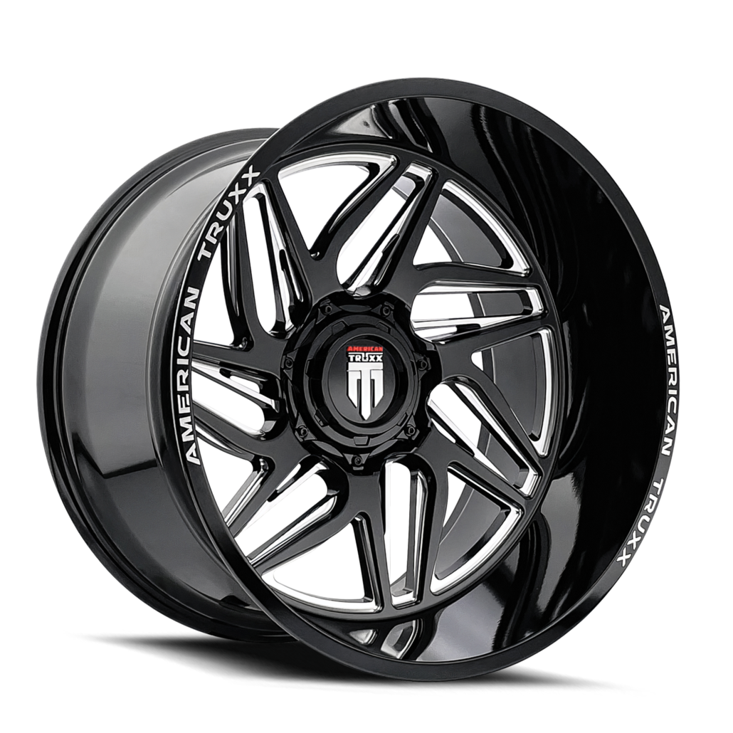 American Truxx Milled Gloss Black AT-1917 Goliath Wheels feature a deep face to emphasize the depth of the smooth lip for an aggressive stance and offset. The directional split-spokes feature milled accents that provide the wheel with a modern style. Deep lips and large diameters are what American Truxx specialize in, and the AT-1917 Goliath puts those features on display.
