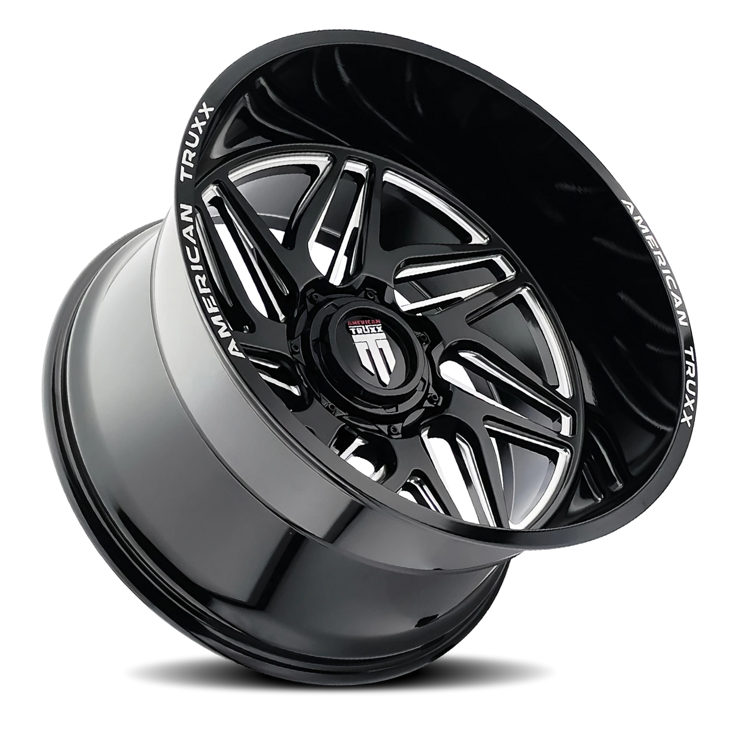 The wheel is covered in a gloss black or chrome finish that is enhanced by the milled accents in the spoke windows. The center cap is adorned with the American Truxx logo to complete the look.