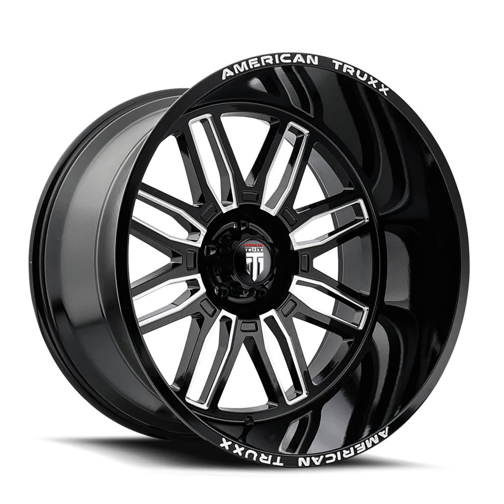 American Truxx Machined Gloss Black AT-1915 Restless Wheels feature a deep face to emphasize the depth of the smooth lip for an aggressive stance and offset. The split-spoked face features machining that provide the wheel with a modern style. Deep lips and large diameters are what American Truxx specialize in, and the AT-1915 Restless puts those features on display.